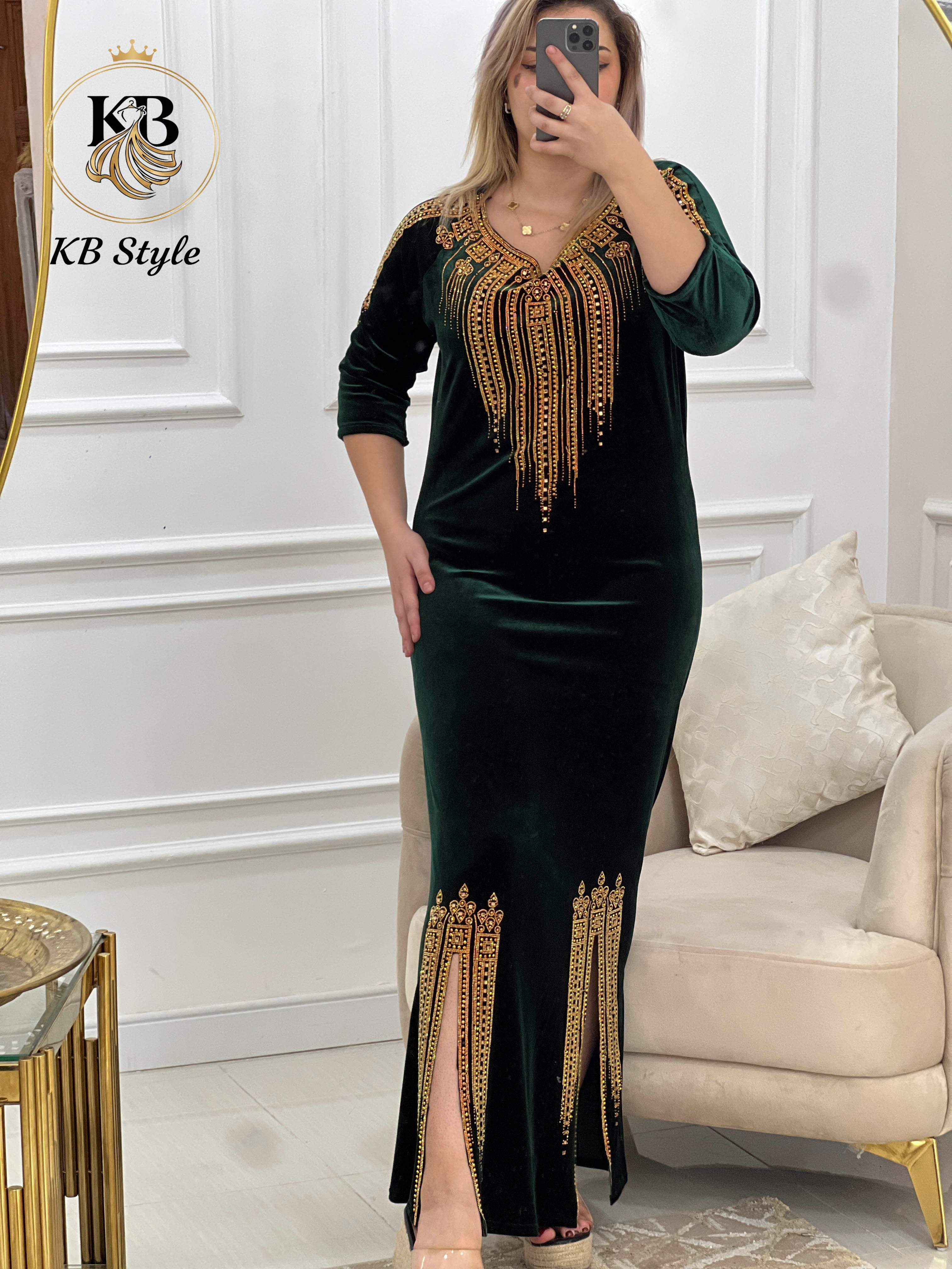 تألّقي بجمال راقٍ مع فستان الأميرة المصنوع من القطيفة الفاخرة والتفاصيل المطرّزة بدقّة لتمنحك حضورًا أنثويًا لا يُنسى ✨👑