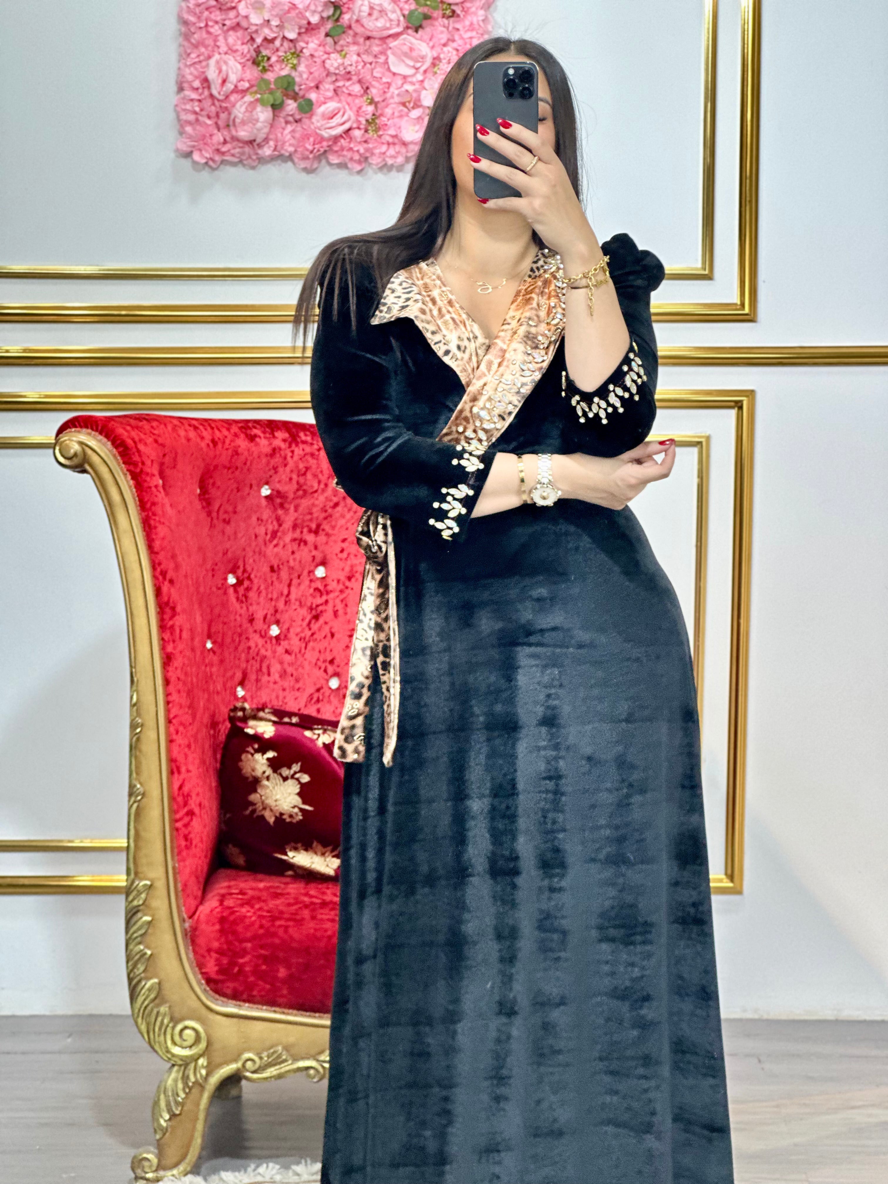 ✨ فستان سلسبيل بلمسة النمرية من القطيفة الفاخرة ✨